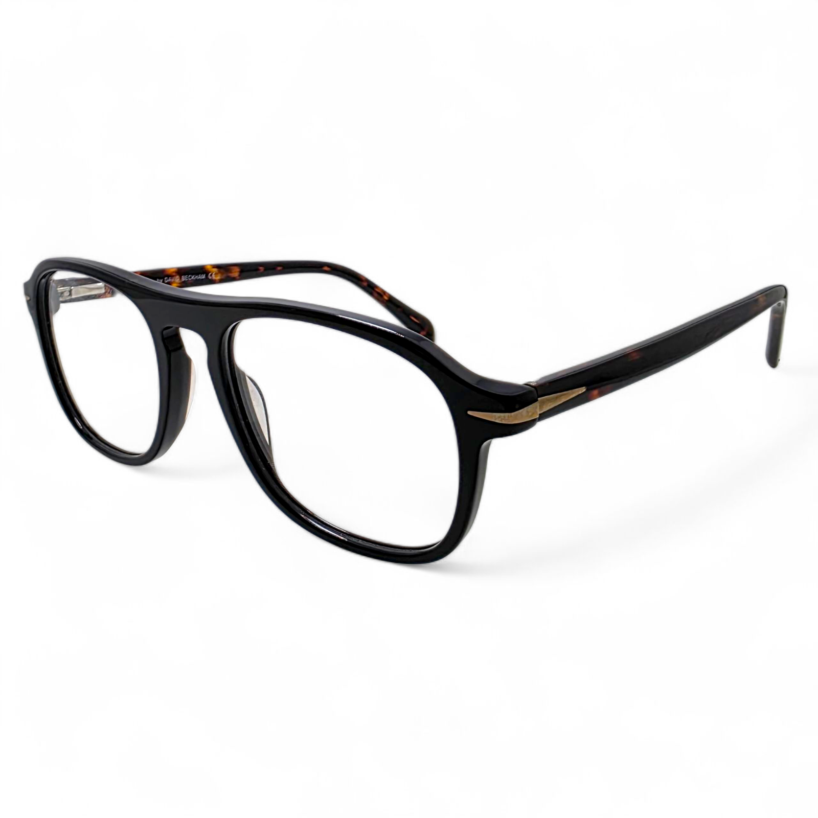The David Beckham Aviator Eyeglasses OLD7046 reflect the brand’s signature balance of masculine charm and refined craftsmanship. This model showcases a distinctive black aviator-inspired shape made from high-quality acetate, offering a bold yet sophisticated silhouette that fits seamlessly into modern wardrobes.