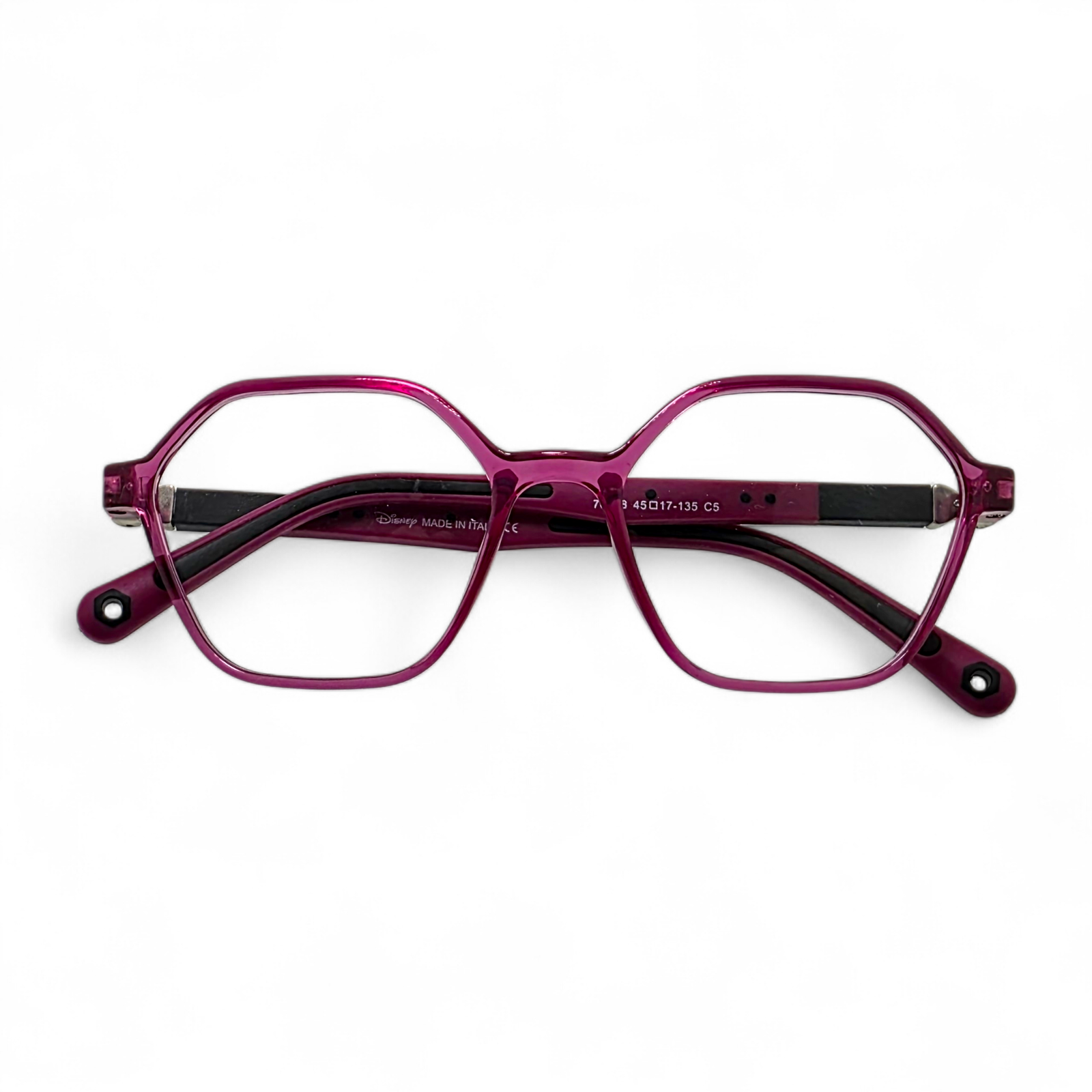 The Disney 76818 Kids Eyeglasses combine cheerful colors, durable craftsmanship, and a unique geometric design — perfect for kids who love to stand out with personality and fun. Made with precision in Italy, these eyeglasses feature an octagonal-inspired shape that gives a trendy yet comfortable look for children.