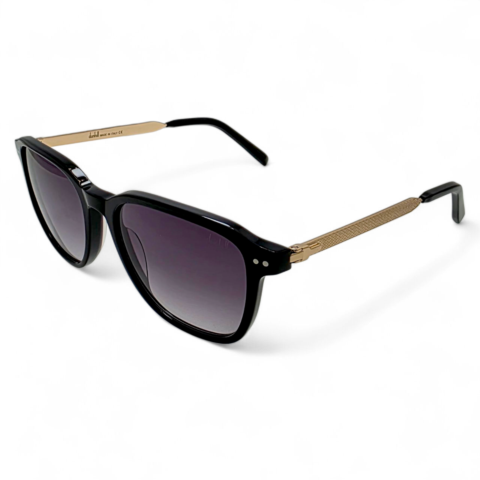 The square-shaped lenses and smoke gradient tint exude understated confidence while offering full UV protection. Each element, from the polished metal detailing to the sculpted temple tips, reflects Dunhill’s commitment to excellence and masculine elegance.