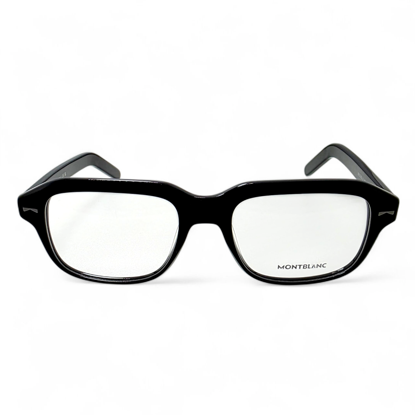 Montblanc MB0228S Eyeglasses in Pakistan, embody timeless elegance and precision — hallmarks of Montblanc’s craftsmanship. This frame showcases a refined rectangular silhouette made from premium glossy black acetate, offering both durability and sophistication.