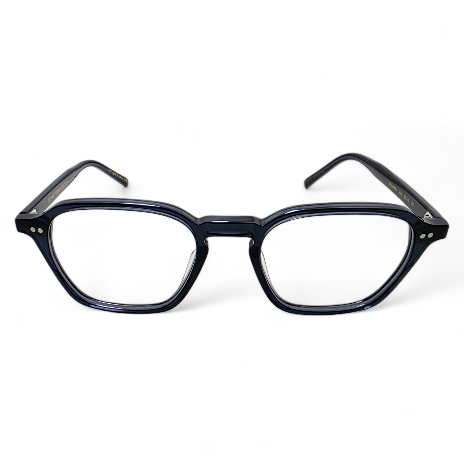 The square-round hybrid silhouette evokes a vintage academic charm, while the sculpted keyhole bridge and custom Oliver Peoples core wire along the inner temples showcase meticulous detailing. Small silver pins at the front and hinge area provide both structure and a nod to Oliver Peoples’ minimalist aesthetic.